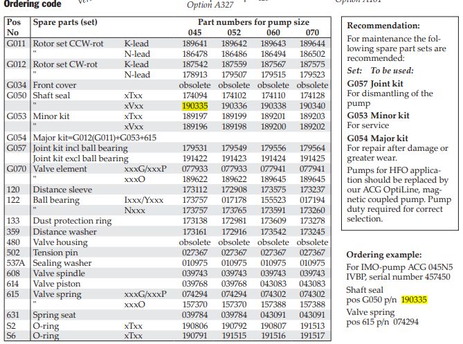 High quality pump shaft seal for IMO ACG/ACF series XVXX 190336