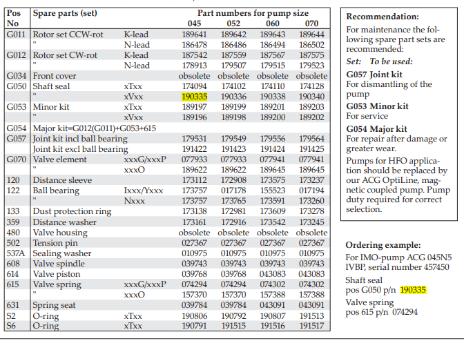 OEM mechanical seals for IMO pump series ACG/UCG XVXX 190335