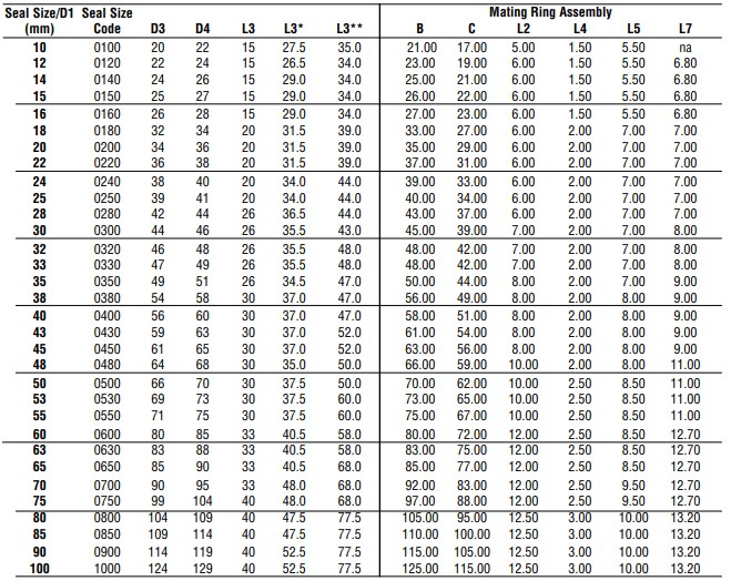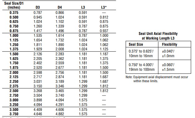 Notes: The range of pressure, temperature and sliding velocity is depend on seals combination materials