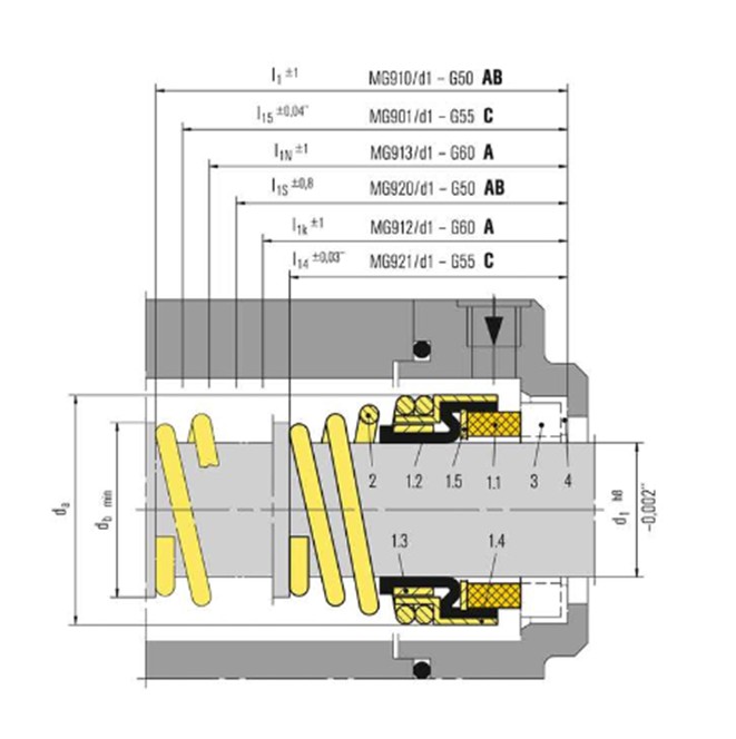 WMG912 replacement of Burgmann MG912, Single Seal unbalanced mechanical shaft sea